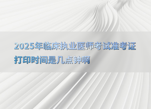 2025年临床执业医师综合笔试考试时间为8月23日至24日,准考证打印时间因地区而异,一般在考前7天左右开放。