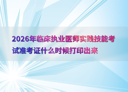 2026年临床执业医师实践技能考试时间为6月6日至17日,准考证打印时间因地区而异,通常在考前1-2周开放打印。