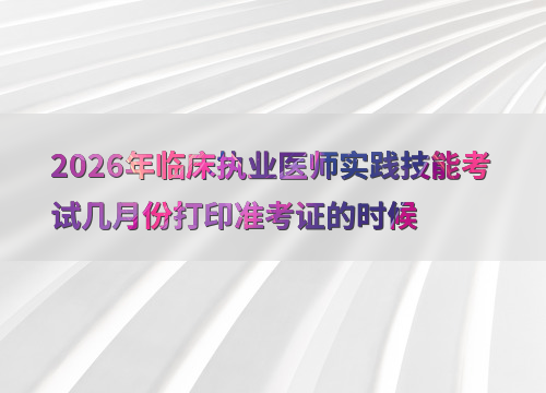 2026年临床执业医师实践技能考试时间为6月6日至17日,准考证打印时间因地区而异,通常在考前1-2周开放。