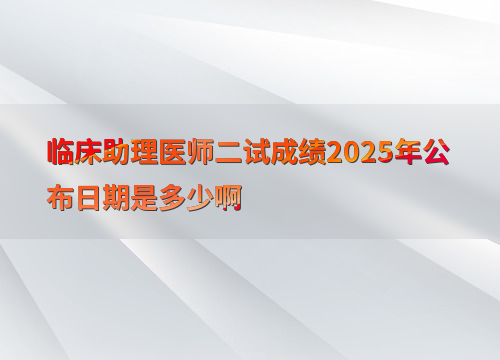 2025年临床助理医师二试成绩预计在11月末至12月初公布,参考近年时间规律(如2024年为11月30日),建议考生提前准备准考证和证件信息,以便及时查询。