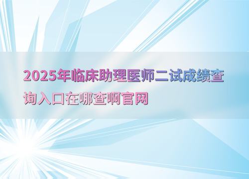 2025年临床助理医师二试成绩预计在11月末至12月初公布,考生可通过国家医学考试网(http://www.nmec.org.cn/)首页“成绩查询入口”进行查询。