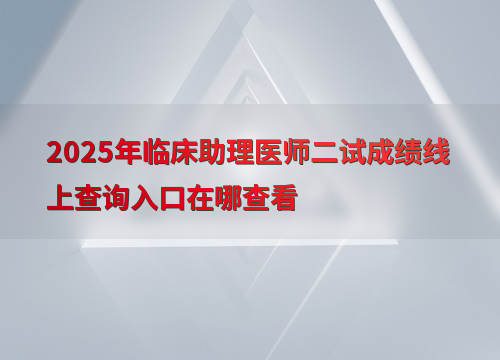 2025年临床助理医师二试成绩预计在12月初公布,参考近年数据(如2024年11月30日、2023年12月8日),考生可提前准备。