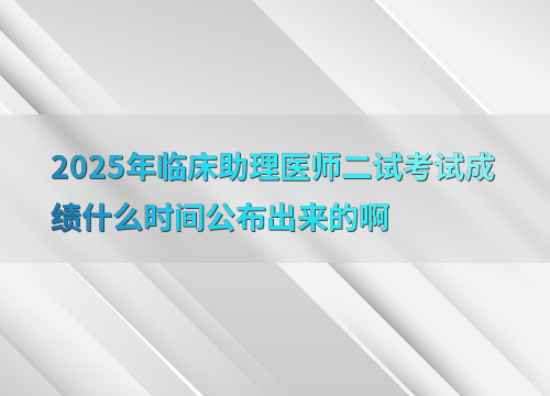 2025年临床助理医师二试成绩预计在12月初公布,参考近年时间规律(如2024年11月30日、2023年12月8日),考生可提前准备查询。
