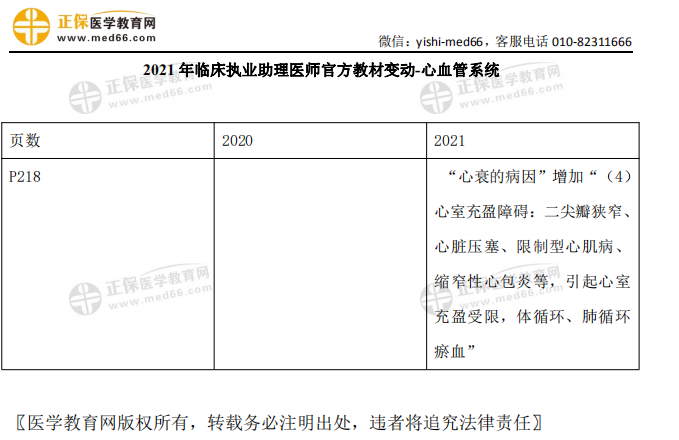 以上关于“2021年临床执业助理医师考试【心血管系统】官方教材变动细则”的文章由医学教育网编辑整理搜集,希望可以帮助到大家,更多的文章随时关注医学教育网!