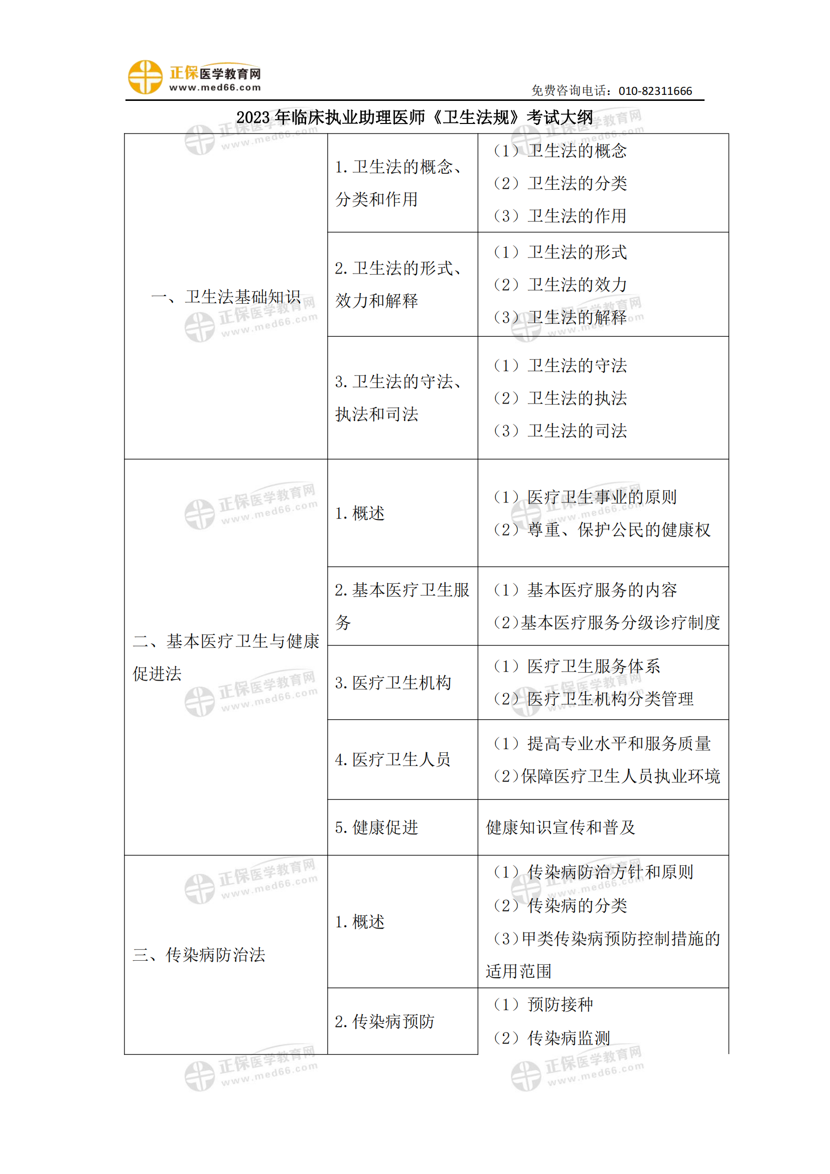“2023年临床助理医师考试综合笔试《卫生法规》考试大纲下载”的内容,由医学教育网编辑整理,更多临床助理医师考试复习资料、考试动态、学习经验技巧,敬请关注医学教育网临床助理医师栏目。