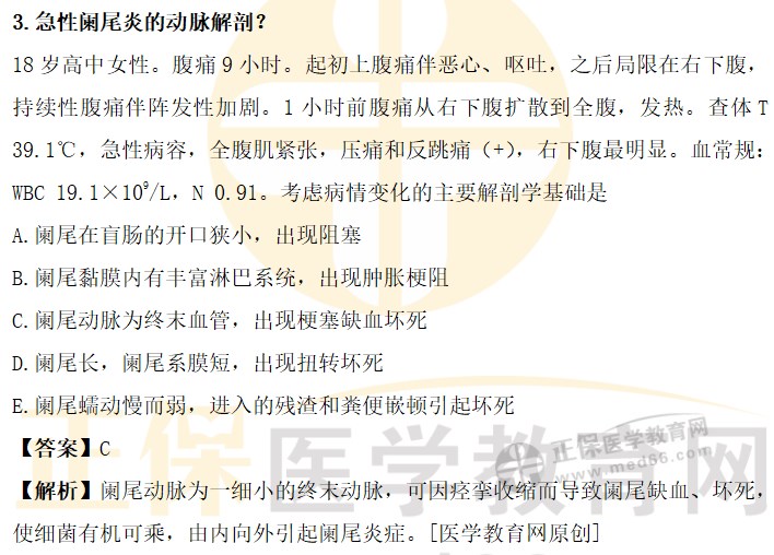 3.急性阑尾炎的动脉解剖?