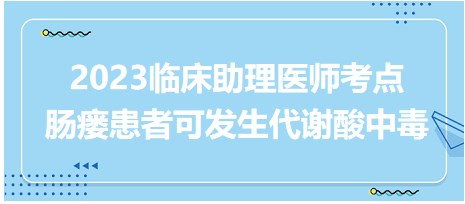 正保医学教育网小编教研团队整理了2023临床助理医师(一试)考试中涉及到的考点内容:肠瘘患者可发生代谢酸中毒,希望对二试学员以及备考24年考试的考生有所帮助!2023临床助理医师二试将于11月份开考,请各位考生做好备考准备!