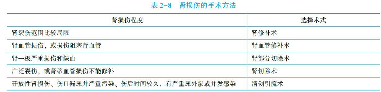 (1)手术指征(易理解,不用背):①开放性肾损伤;②严重休克经输血、输液仍不能纠正;③合并腹内脏器损伤者;④腰部包块逐渐增大;⑤血尿逐渐加重,血红蛋白及血细胞比容逐渐下降。
