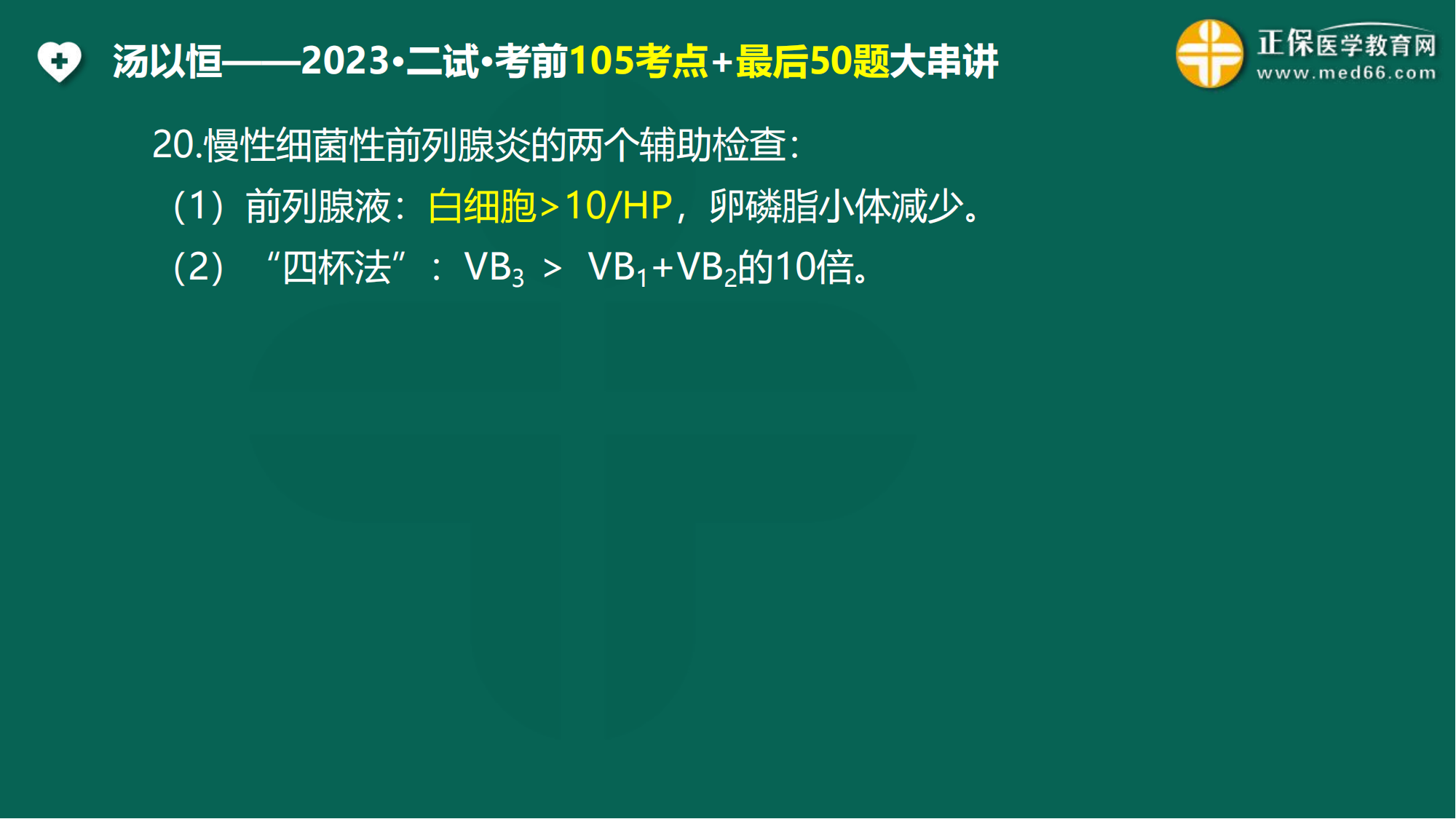 以上就是汤以恒老师11月7日直播间给大家带来的临床二试考前紧急串讲考点,各位临床助理医师考生赶快看一看,考前搂分!没有参加直播的同学,可以点击观看回放视频>>