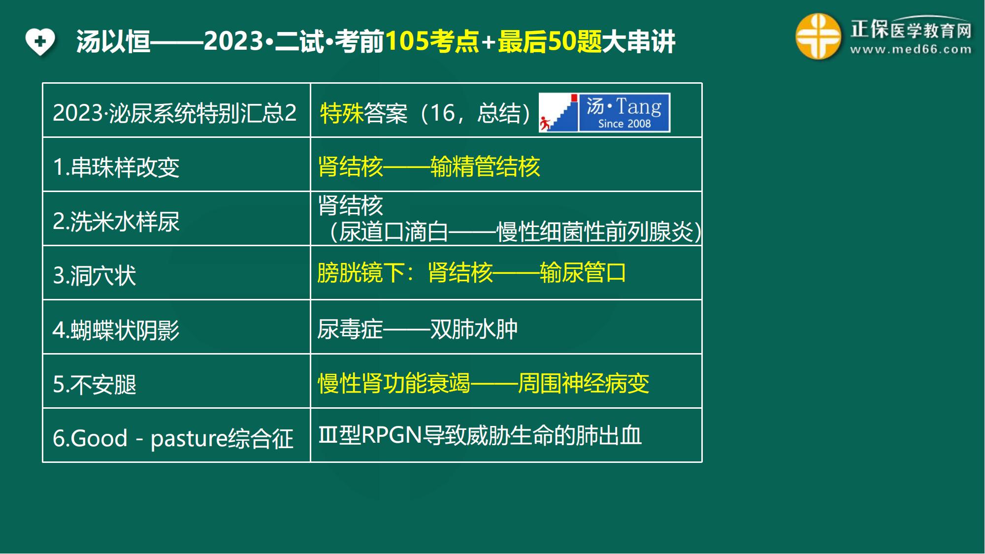 2023临床助理医师二试11月11日开考!如何在考前最后几天紧急搂分?网校特邀请汤以恒老师给大家精选了泌尿系统拿分考点,本篇给大家汇总的是16个关于泌尿系统的考点总结,赶快学起来!