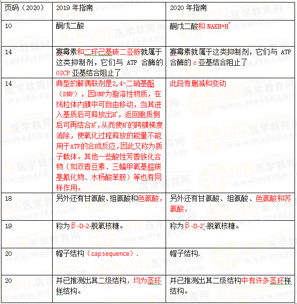 2020年临床助理医师考试官方教材和大纲已经公布啦,网校专业老师通过与2019年应试指南进行对比,生物化学科目变化详情如下: