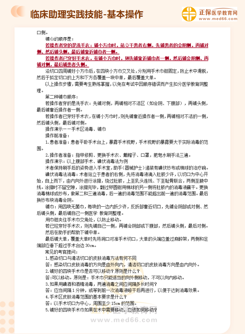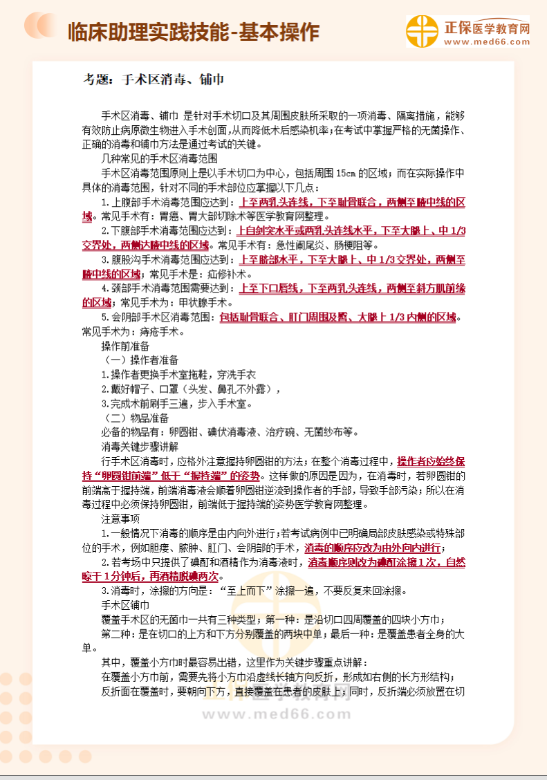 临床助理医师实践技能第3考站基本操作题:手术区消毒、铺巾!医学教育网编辑整理分享如下内容,希望可以帮助大家更好地掌握相关重点!
