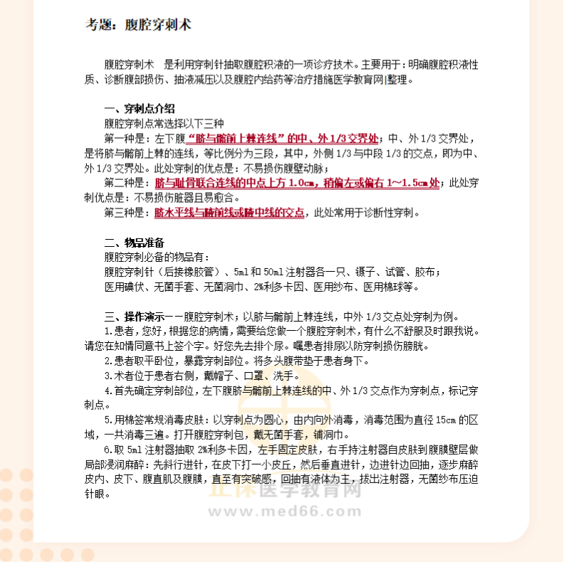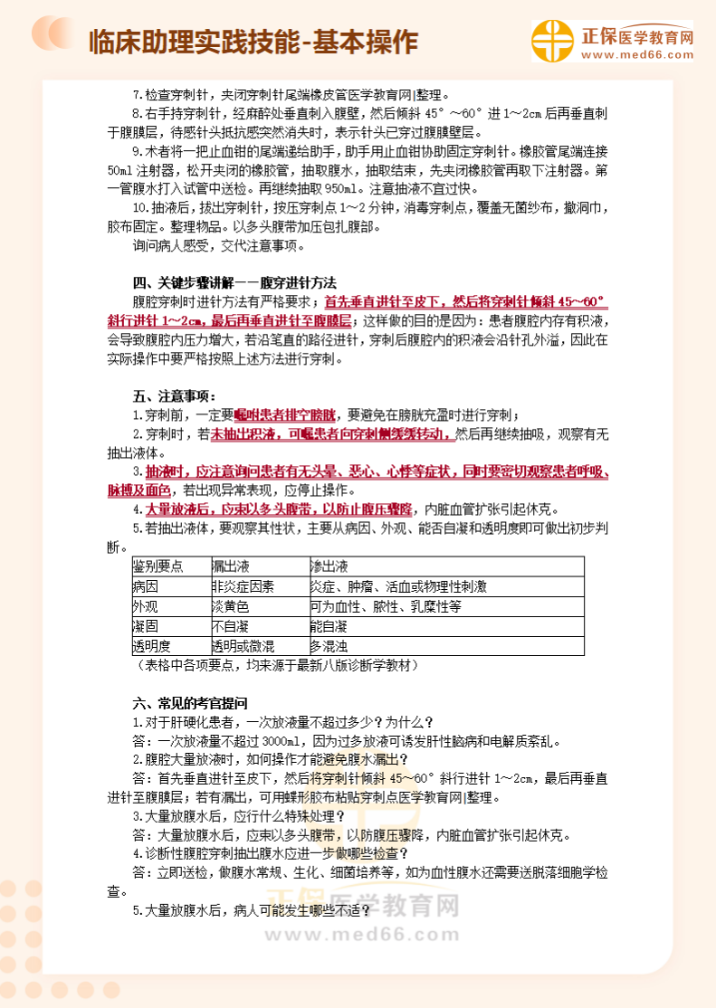 临床助理执业医师实践技能基本操作习题:腹腔穿刺术!医学教育网编辑整理分享如下内容,希望可以帮助大家更好地掌握相关重点!
