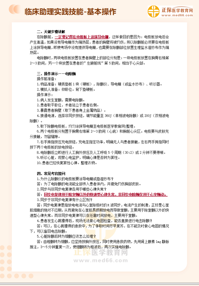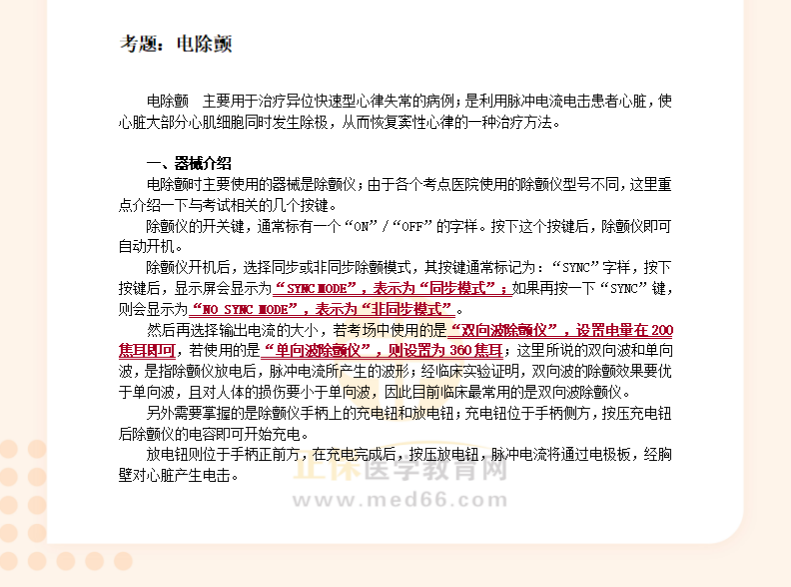 临床助理实践技能考试【基本操作】习题:电除颤!医学教育网编辑整理分享如下内容,希望可以帮助大家更好地掌握相关重点!