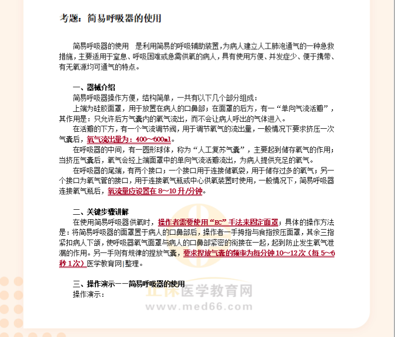 临床助理医师技能考试【基本操作】习题:简易呼吸器的使用!医学教育网编辑整理分享如下内容,希望可以帮助大家更好地掌握相关重点!