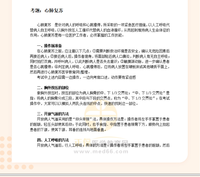 心肺复苏-临床执业助理医师实践技能考试基本操作常考知识点!医学教育网编辑整理分享如下内容,希望可以帮助大家更好地掌握相关重点!