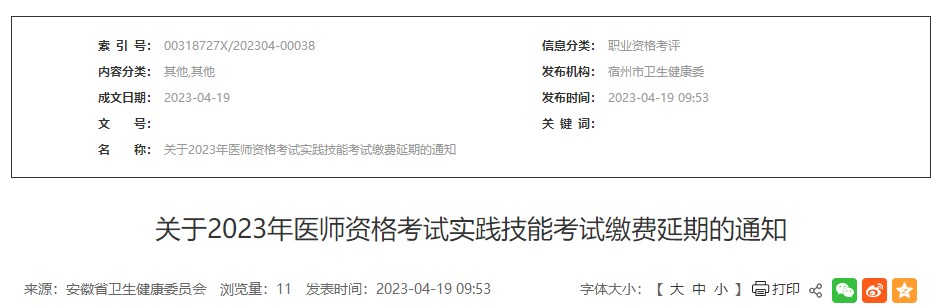 安徽合肥2023临床助理医师考生速看!技能缴费延长至20号截止!