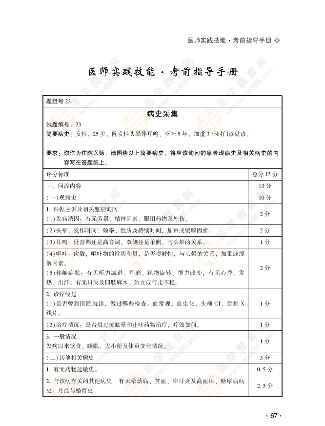 【临床病史采集23号习题】女性,25岁。阵发性头晕伴耳鸣、呕吐5年,加重3小时门诊就诊!具体内容医学教育网编辑整理分享如下,希望对正在备战2022年医师实践技能考试的考生有所帮助!