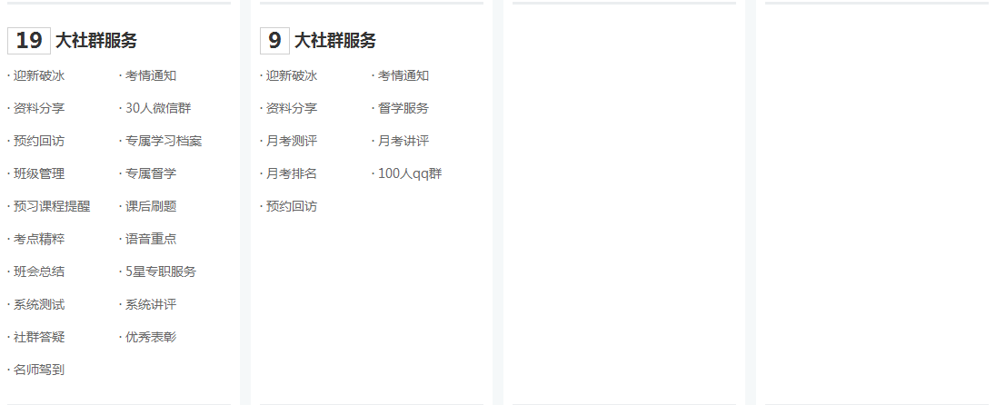 2、各大班次课程服务对比(点击图片查看详情)