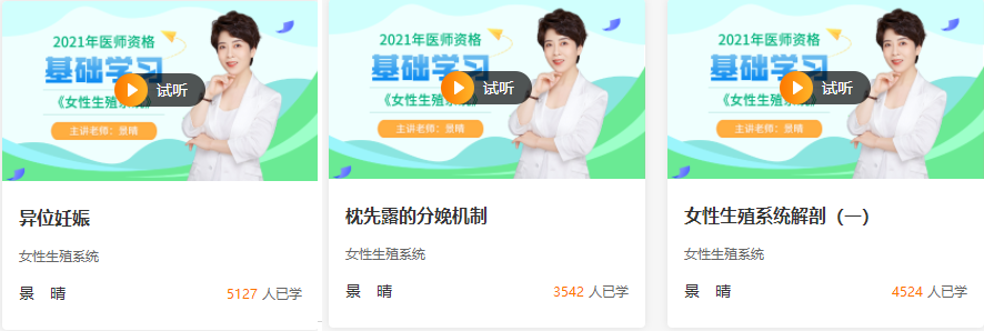 以上关于“女神景晴老师《女性生殖系统》2021年临床助理医师基础班新课开通!”的文章由医学教育网编辑整理搜集,希望可以帮助到大家,更多的文章随时关注医学教育网!