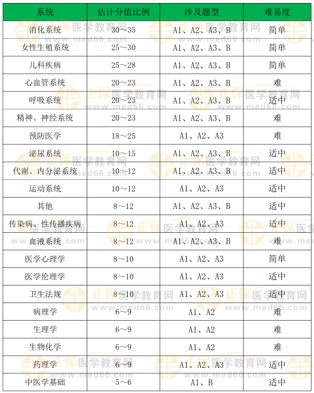 5.总体而言,考试难度保持适中,但呈现出越来越多考察疾病深度和注重细节的特点。考生在平时的学习中应多思考,拓宽思路,加深理解,对大纲要求的疾病进行深入学习,不要只学习个表面。