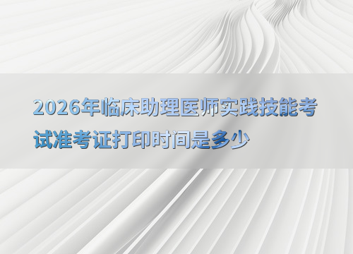 2026年临床助理医师实践技能考试时间为6月6日至17日,准考证打印时间因地区而异,通常在考前1-2周开放打印。