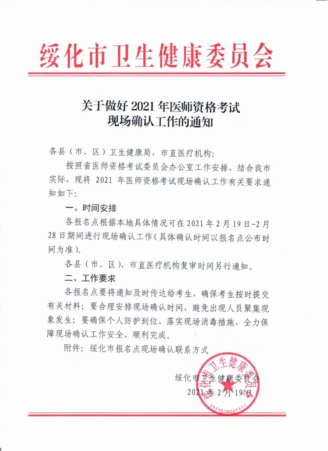 黑龙江绥化发布了2021年医师资格考试现场确认工作的通知,现场确认时间为2月19日-2月28日,具体时间安排以报名点公布为准。通知文件如下截图: