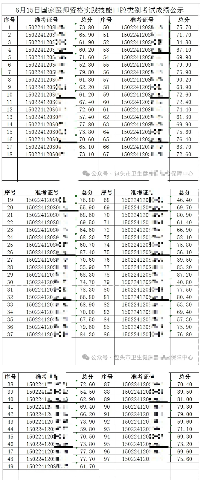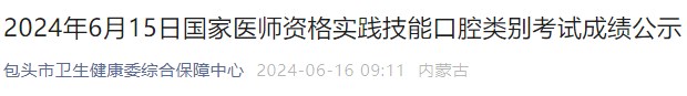 原文通知标题:2024年6月16日国家医师资格实践技能口腔类别考试成绩公示