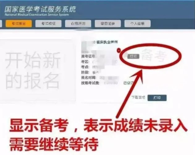 6.初次查询,状态显示为“备考”,可能是成绩暂未上传至国家医学考试网,即成绩查询入口暂未开通,比如陕西西安;或者需要在当地考试中心查询。