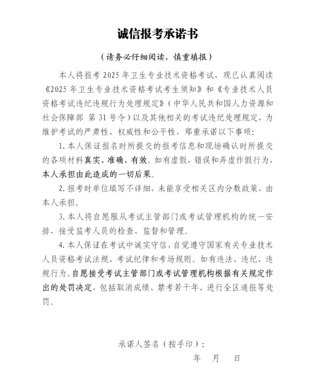 8、《诚信报考承诺书》1份;