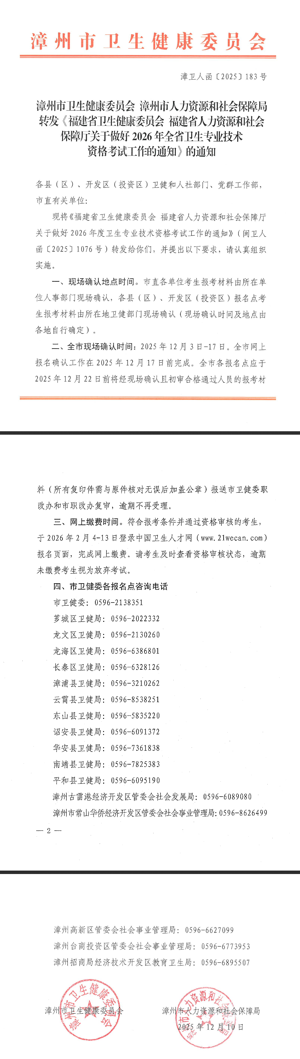 漳州市关于做好2026年卫生专业技术资格考试工作的通知