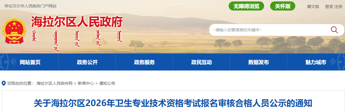 附件:海拉尔区2026年卫生专业技术资格考试报考人员花名册(因涉及用户隐私,请移步至海拉尔区人民政府查看)