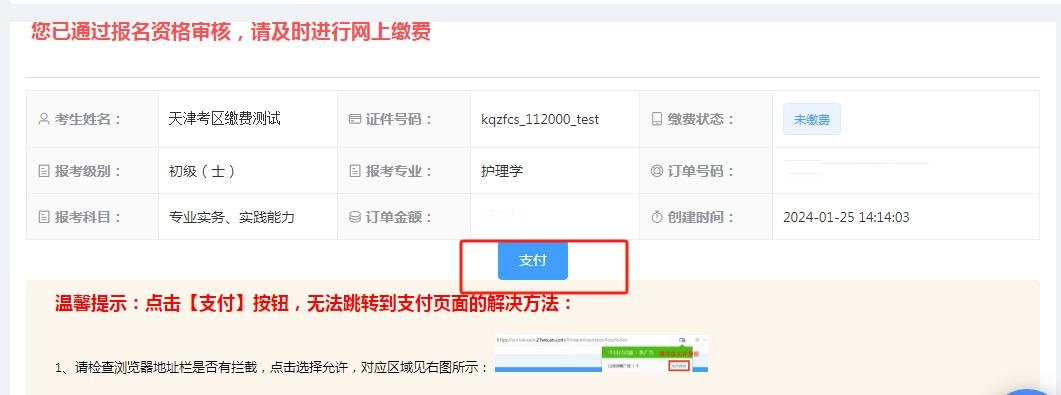 1.考生在报名网站(中国卫生人才网)点击报名的考试项目后,进入报考流程缴费页面进行支付。