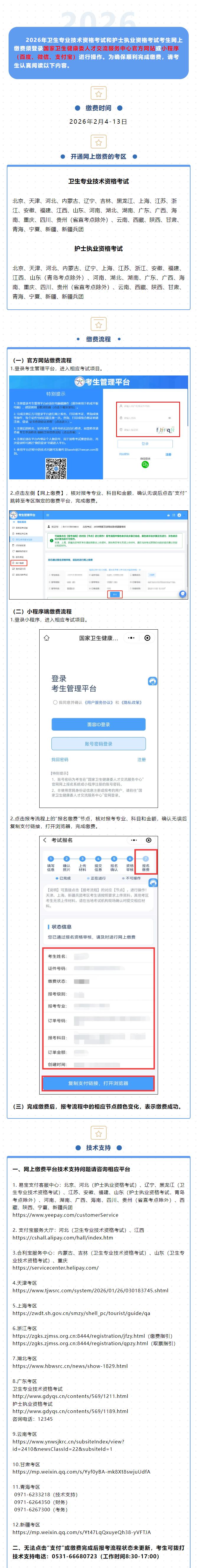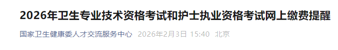 【官方】2026年卫生专业技术资格考试和护士执业资格考试网上缴费提醒
