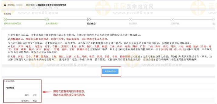 上传照片后系统将跳转至【提交报名信息】页,也可点击【报考流程】处的“提交信息”节点,确认无误后点击“提交报名信息”。