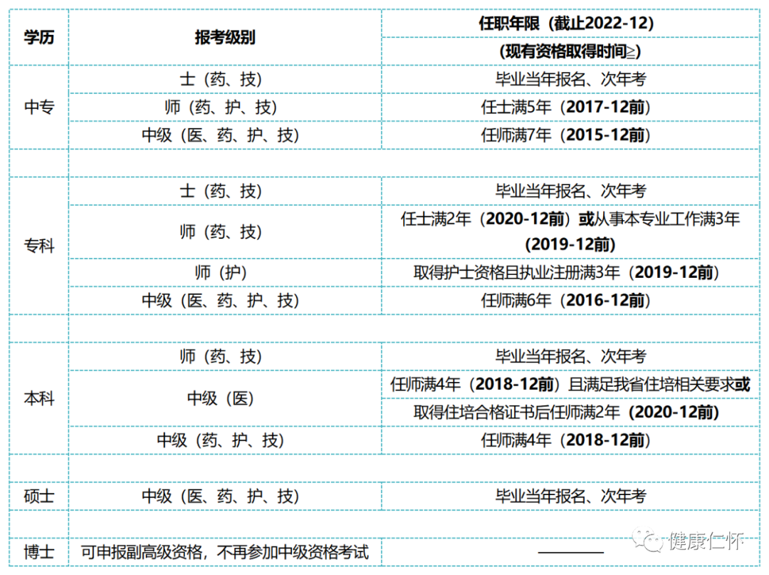 四、2023年度卫生专业技术资格考试学历和任职年限对照表