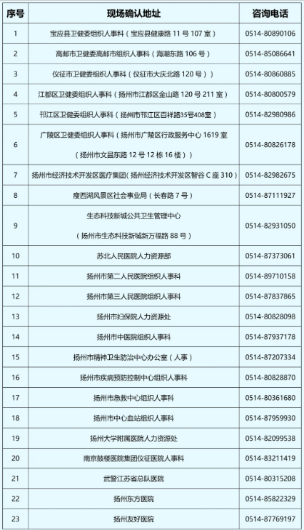 市直单位、驻扬单位的考生在考生所在单位人事部门进行现场确认,其他单位的考生在单位所在辖区报名点进行现场确认。