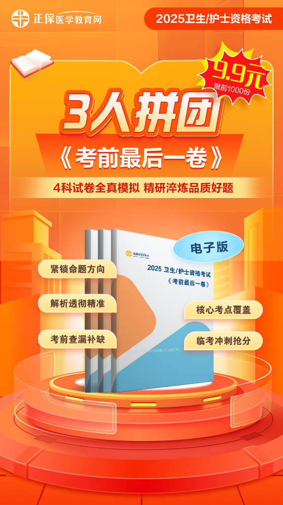 卫生资格临考冲刺《最后一卷》就特别适合于冲刺提升阶段。帮助大家进行针对性复习&刷题。