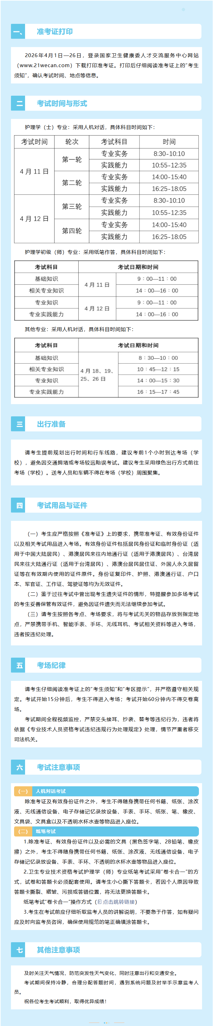 2026年度卫生专业技术资格考试和护士执业资格考试河源考点温馨提示