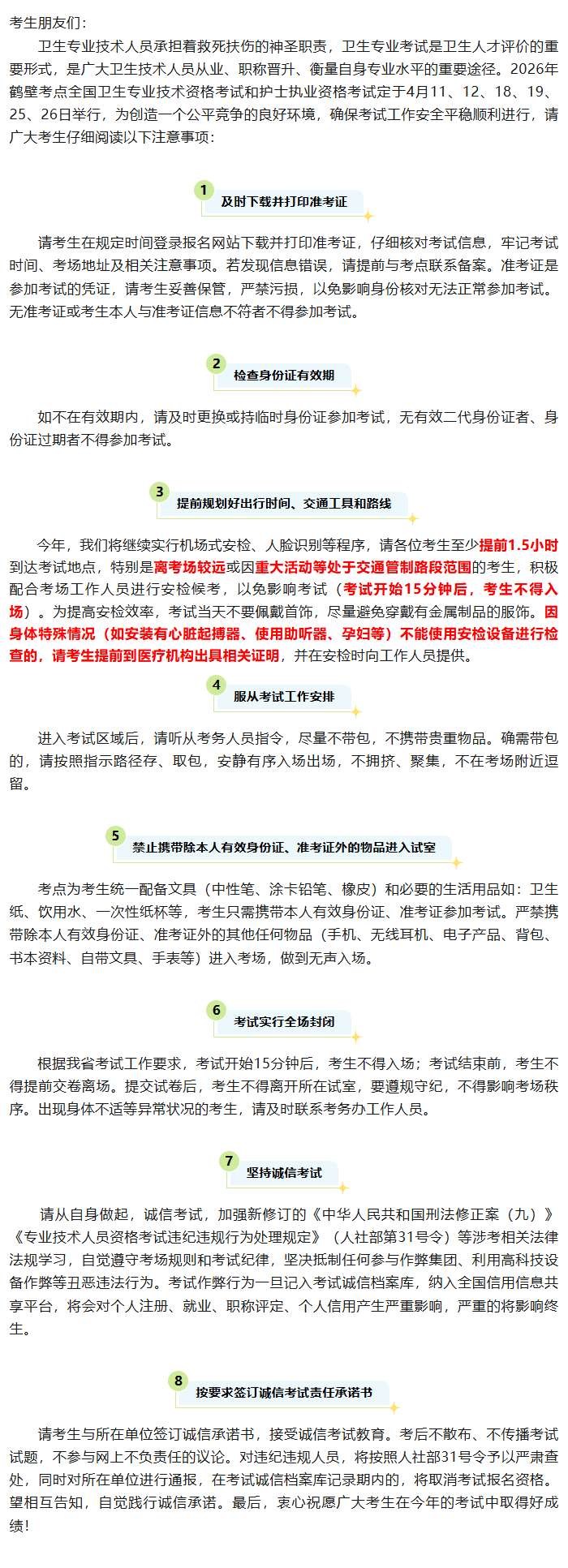 鹤壁考点:2026年卫生资格考试“致广大考生的一封信”