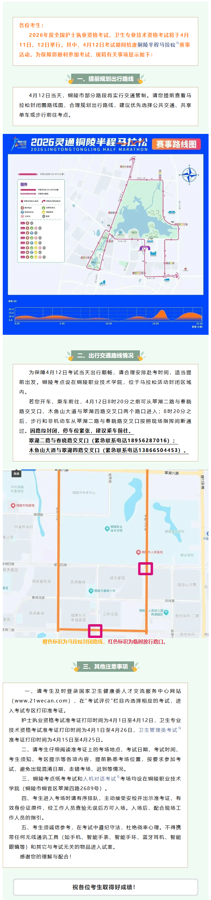 2026年度全国护士执业资格考试、卫生专业技术资格考试(铜陵考点)考前温馨提示