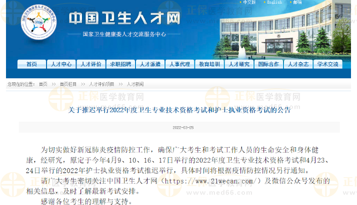 各位卫生资格、护士资格考生注意啦!中国卫生人才网发布官方通知!2022年卫生资格、护士资格考试推迟举行!具体时间将根据疫情防控情况另行通知!
