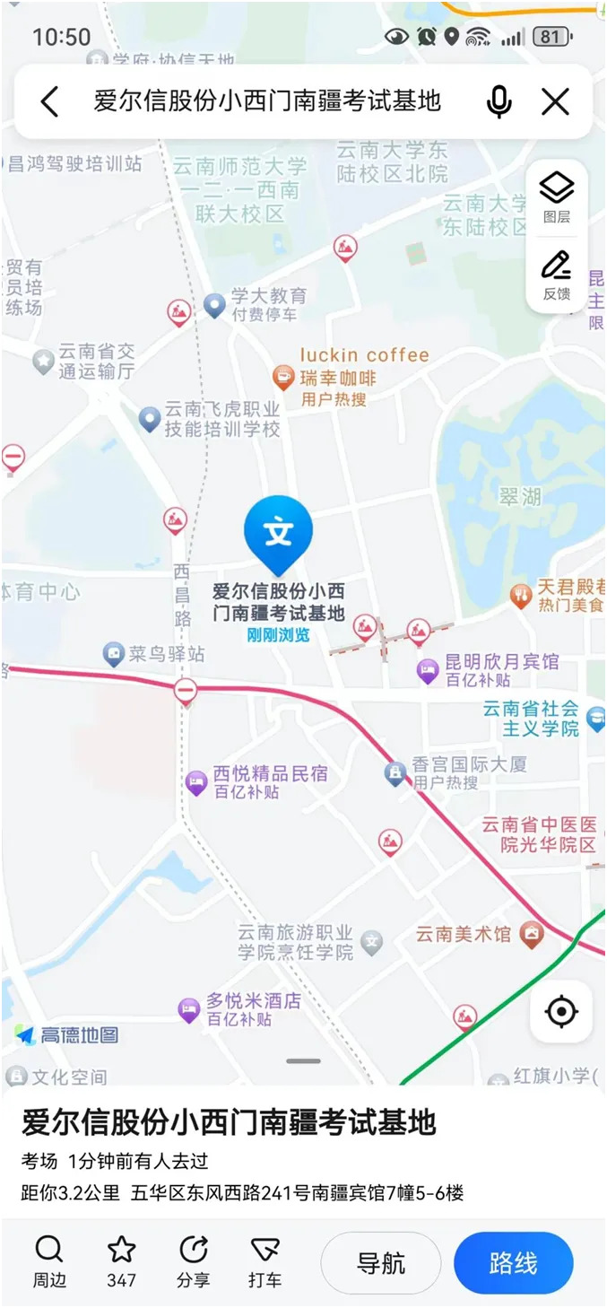 二、昆明考点考试区域及考试时间安排: