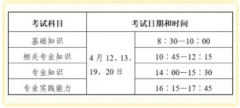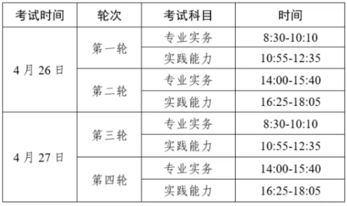 护理学初级(师,专业代码203)专业纸笔考试时间安排
