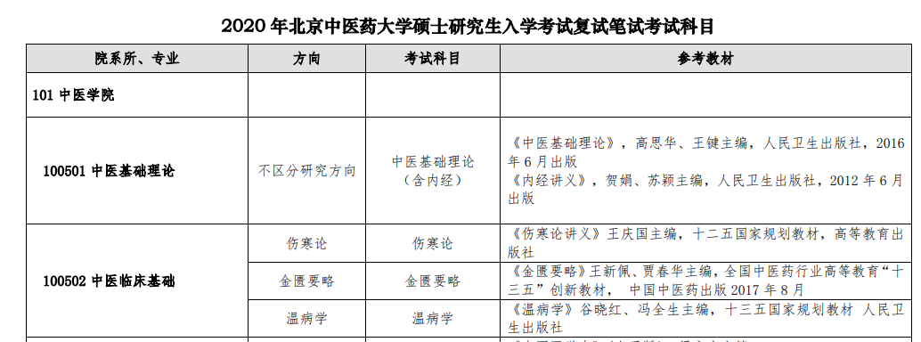 点击下载: 2020年北京中医药大学硕士研究生入学考试复试笔试考试科目