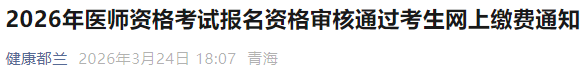 考生注意:青海省2026年乡村全科助理医师考试实践技能缴费已开始!请相关考生及时登录国家医学考试网查询考生服务系统报名状态,按时完成技能缴费!