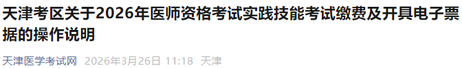 天津2026年乡村全科助理医师考试实践技能缴费入口已开通!请相关考生仔细查看以下官方通知提醒内容,按时完成技能缴费!