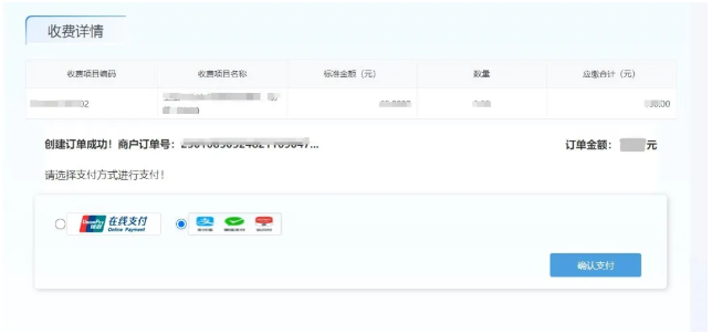 2.跳转至收费详情页面,确认后点击确认缴费。