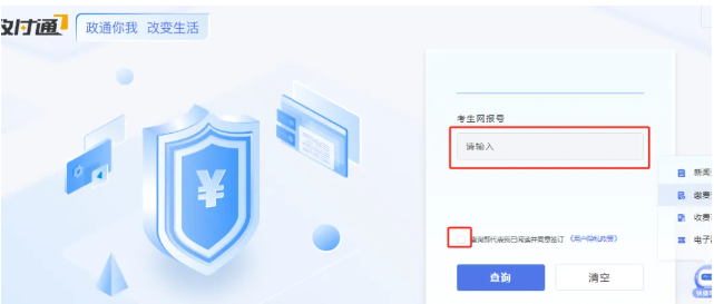 此地址跳转到缴款码查询页面,用来查询此次考试缴费对应的缴款码(标红处输入考生网报号,并勾选下方“同意签订《商户服务协议》”后点击查询即可,网报号在报名系统中打印的《报名申请表》左上角显示)。