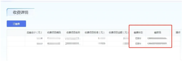 6.缴费完成后,回到点击缴费页面,点击刷新页面后查看缴费是否成功。